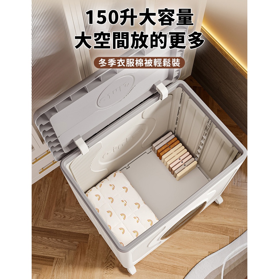 【免運】150L大容量折疊衣物收納箱(附輪) 整理箱 棉被收納 翻蓋收納箱 玩具箱 儲物櫃 摺疊收納箱 收納櫃 置物櫃灰色|咖啡色Others【Fameli】品味生活館
