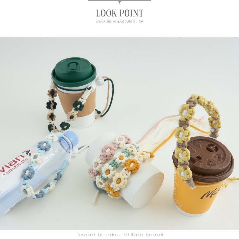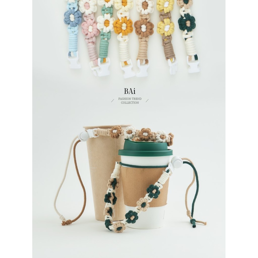 BAi白媽媽 小雛菊飲料提帶/手工編織花朵手提杯繩-台灣現貨 隔日到貨【346235】奶咖(08)|鵝黃(09)|粉紅(13)|粉藍(18)|黃咖(04)|墨綠(05)|粉綠(06)OthersBAi白媽媽 品牌旗艦店