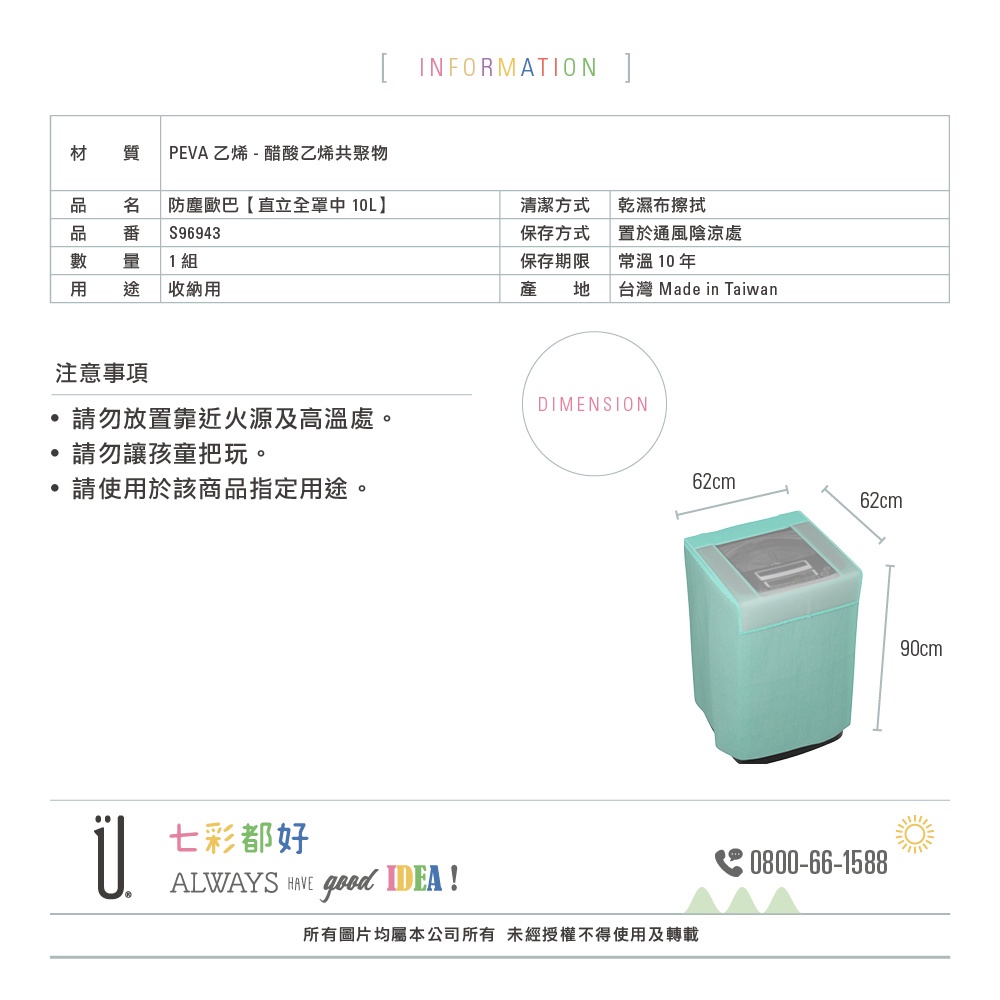 【UDiLiFE】 生活大師 防塵歐巴直立全罩中10L洗衣機防塵套 防水防曬 洗衣機防塵套 洗衣機套 洗衣機蓋布咖啡色|綠色|灰色Furniture & Appliance Covers【UDiLiFE】優的生活大師《官方旗艦館》