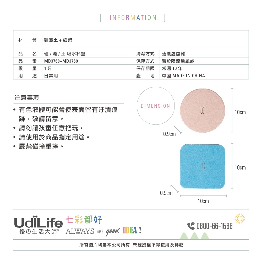 【UDiLiFE】 生活大師 UC方型吸水杯墊10x10CM 吸水杯墊 隔熱杯墊 方形杯墊粉色|灰色|藍色Placemats & Coasters【UDiLiFE】優的生活大師《官方旗艦館》