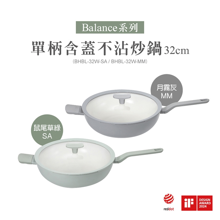 【BergHOFF貝高福】Balance陶瓷塗層不沾鍋系列 單柄含蓋炒鍋32cm(BHBL-32W-MM)_月霧灰【BergHOFF貝高福】Balance陶瓷塗層不沾鍋系列 單柄含蓋炒鍋32cm(BHBL-32W-MM)_月霧灰PansBergHOFF Taiwan|貝高福台灣旗艦店