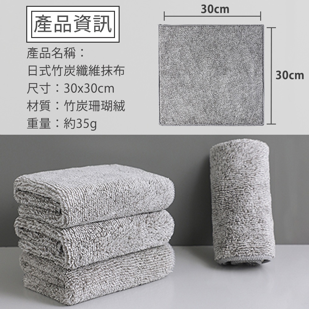 【廚房清潔必備】日式竹炭纖維抹布 30*30公分 超細纖維抹布 強力吸水 去污抹布【DA00064】加厚包邊30x30cmCleaning Cloths【隔日配】JHS專營日用品、汽車百貨、3C周邊