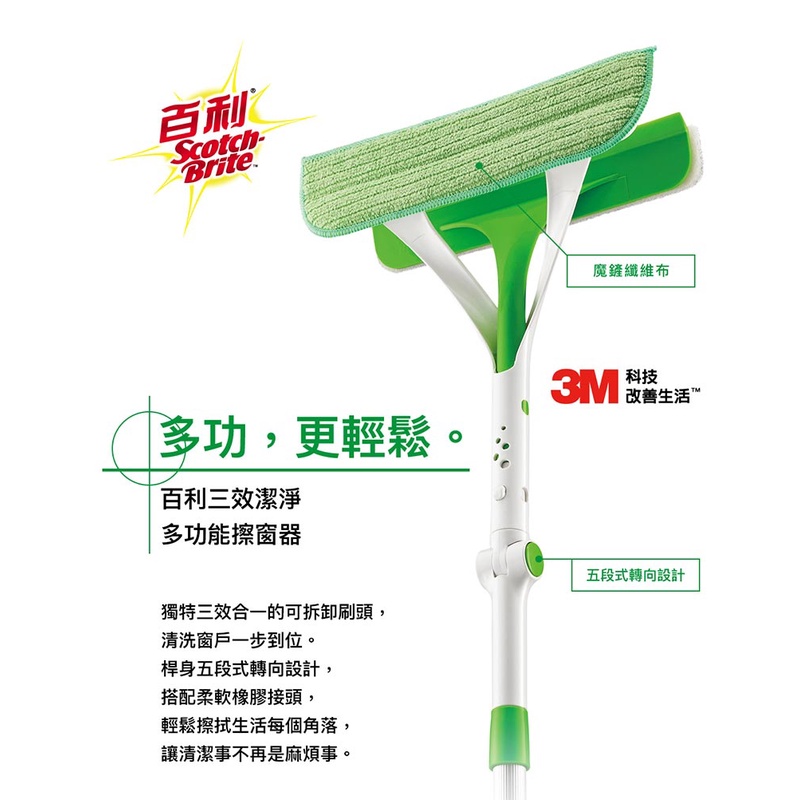 3M 百利 三效潔淨多功能-可分離式設計擦窗器+補充包擦窗器+補充包Mops3M 授權官方旗艦館