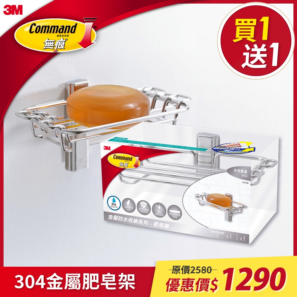 3M 無痕 304金屬-肥皂架【買一送一】買一送一Soap Dispensers, Holders & Boxes3M 授權官方旗艦館
