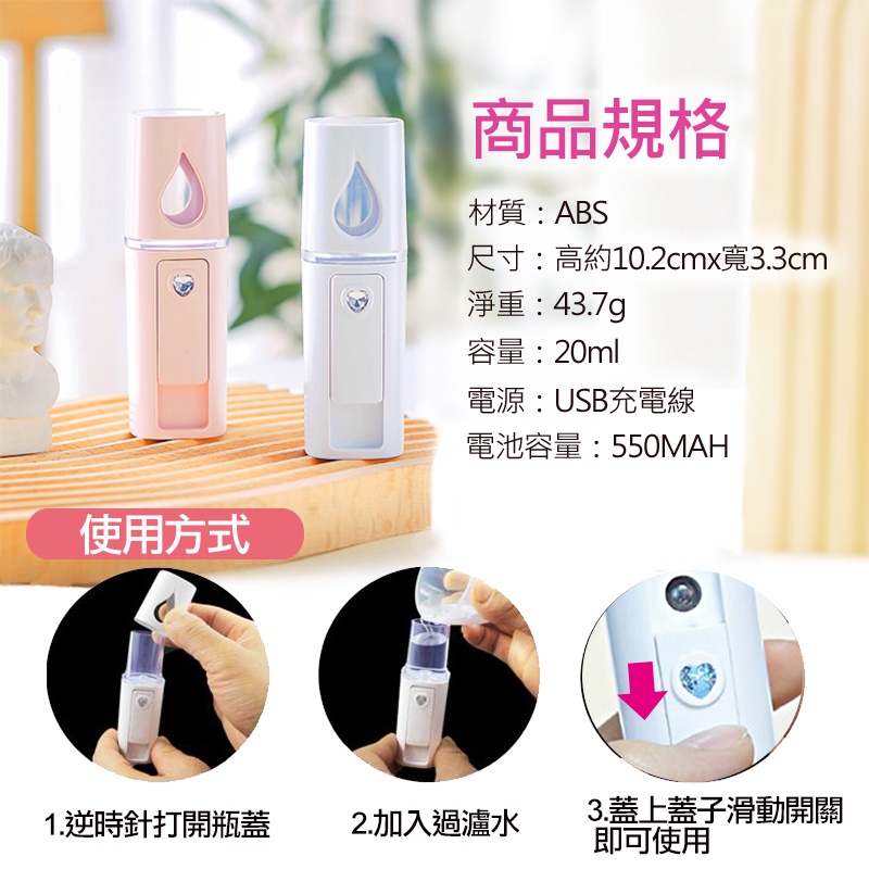 【保濕必備】隨身加濕器 加濕器 霧化機 保濕 噴霧瓶 usb充電 附鏡面款 白色 粉色淡雅粉(帶鏡面設計)|雪花白(帶鏡面設計)Diffusers, Humidifiers & Oil BurnersAGOS購物