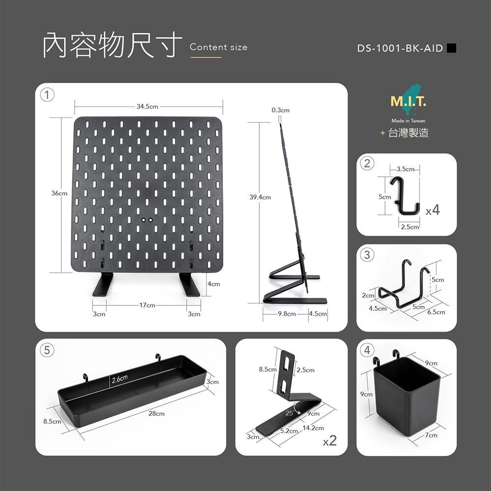 AIDATA 愛得他 桌立式收納洞洞板 附專用收納配件7件組/二色 適配宜家 DS-1001黑色|白色Desk OrganizersAIDATA 愛得他