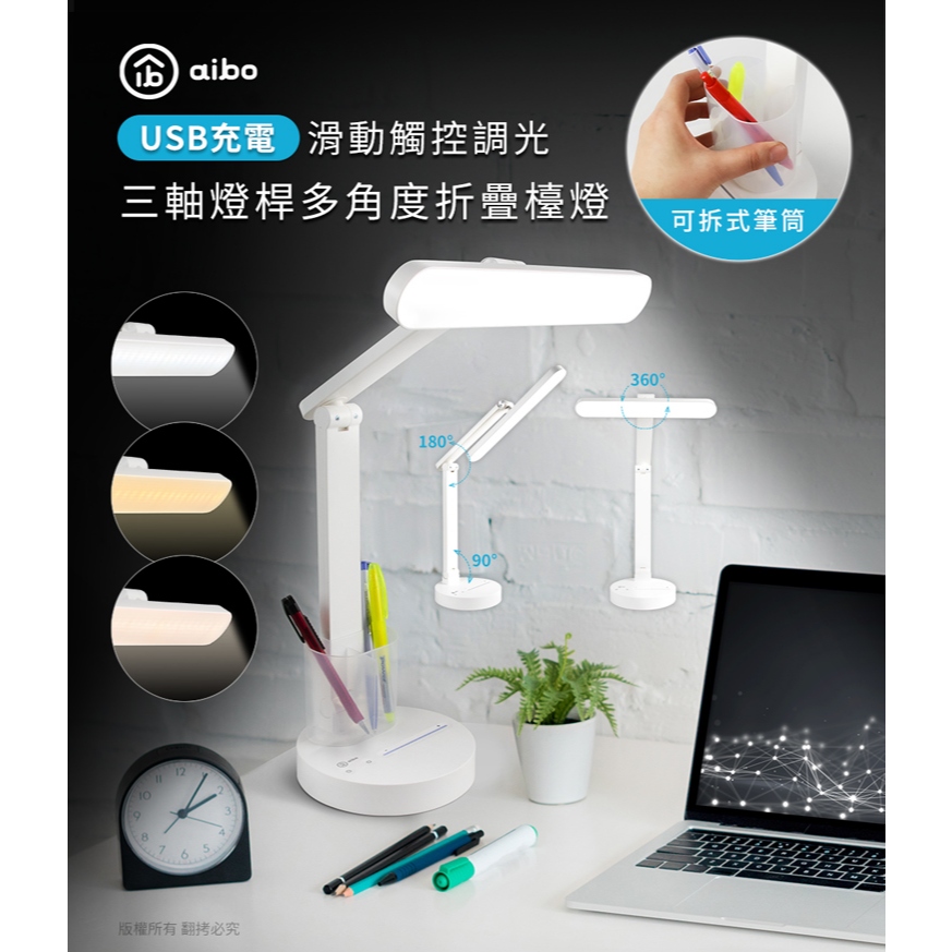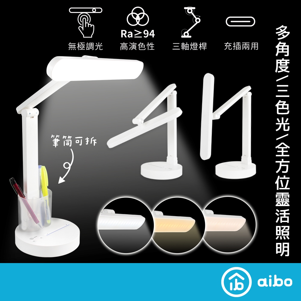 aibo 觸控三色光 LED摺疊檯燈 筆筒可拆【現貨】充電檯燈 高顯色 LED檯燈 觸控檯燈 三軸燈桿多角度 充插兩用aibo 觸控三色光 LED摺疊檯燈 筆筒可拆【現貨】充電檯燈 高顯色 LED檯燈 觸控檯燈 三軸燈桿多角度 充插兩用aibo 3C生活館
