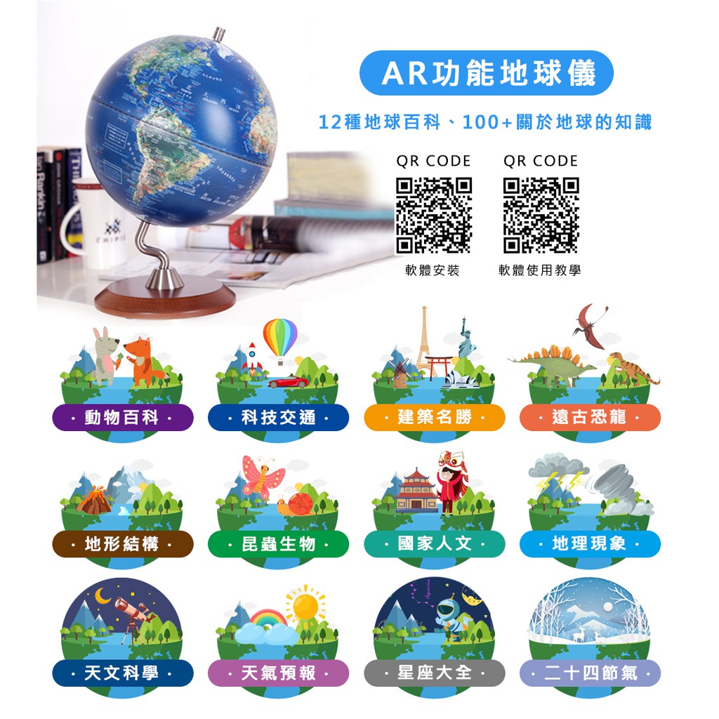 [領券再折]【SkyGlobe】10吋衛星金屬手臂地球儀(有燈/無燈)(中英文版)-共2款《泡泡生活》AR互動款無燈|有燈OthersAll my life 泡泡生活
