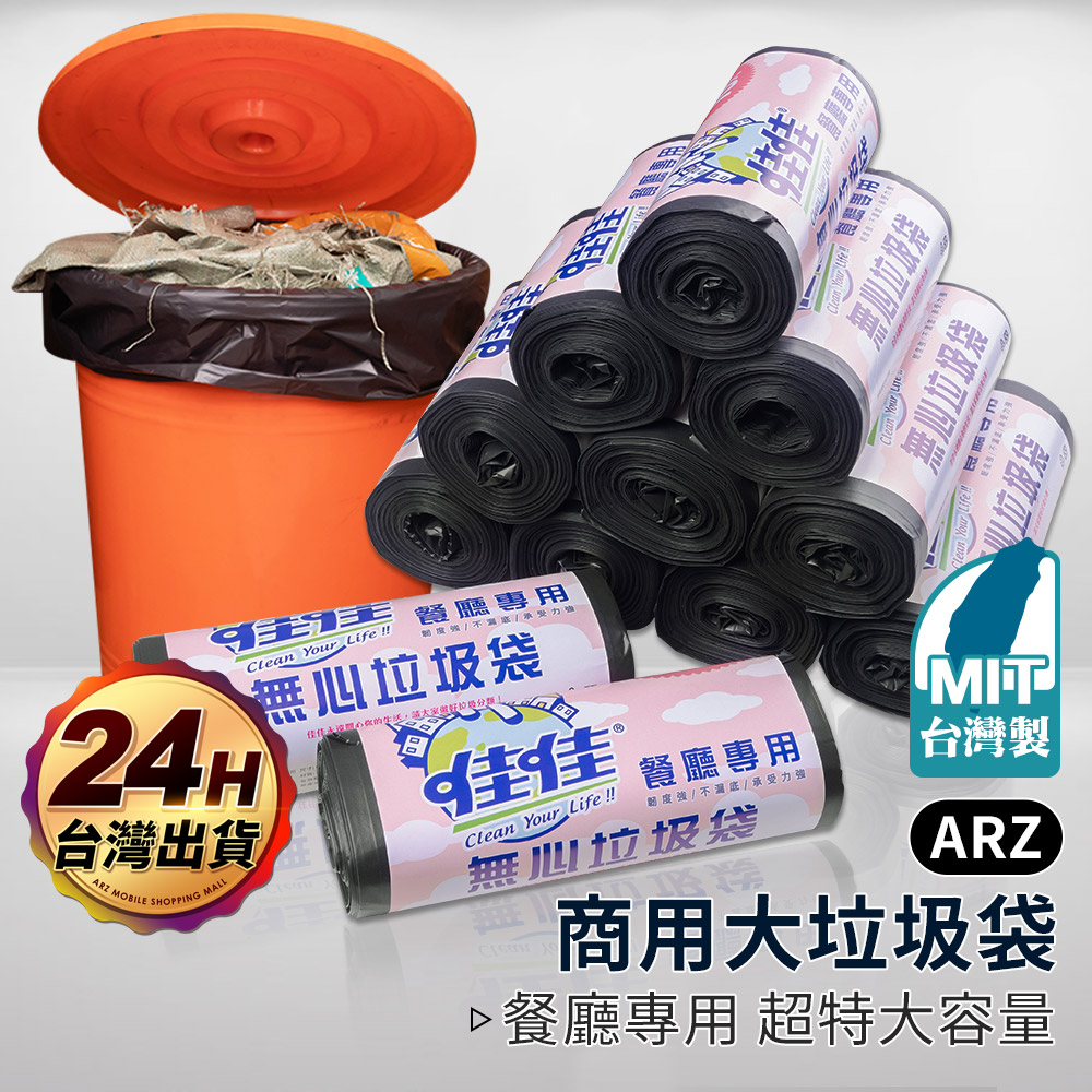 佳佳 加厚 黑色垃圾袋 商用清潔袋【ARZ 實拍現貨】【D233】耐重耐扯 餐廳廚餘 搬家 清潔袋 環保垃圾袋 大垃圾袋黑色,10入/捲(94x110cm)Plastic Bags & Trash BagsARZ行動商城