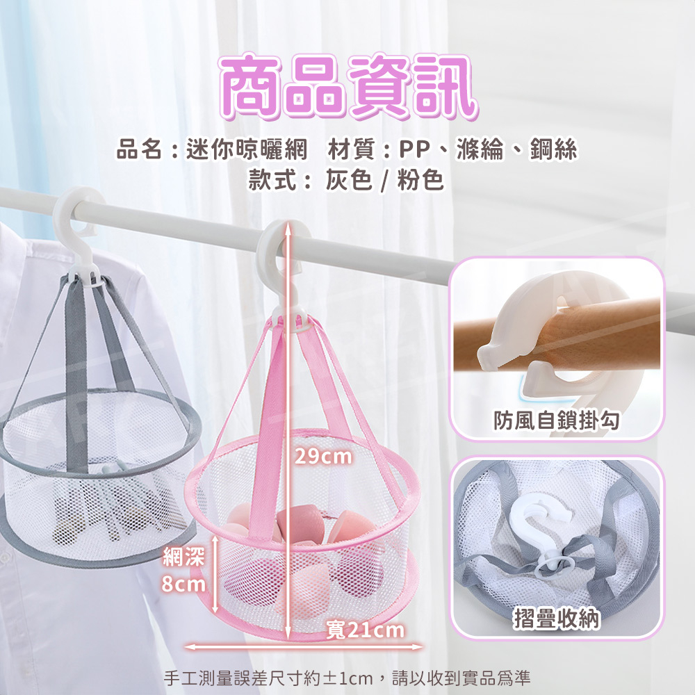 刷具晾曬網 防風掛勾【ARZ】【E132】曬刷具 美妝蛋 粉撲收納 海綿 迷你晾曬網 曬衣網 晾衣籃 防風曬衣網 刷具網灰色|粉色Hangers & PegsARZ行動商城