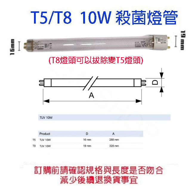 Philips飛利浦TUV紫外線 T5/T8 10W殺菌燈管Philips飛利浦TUV紫外線 T5/T8 10W殺菌燈管 家殿城