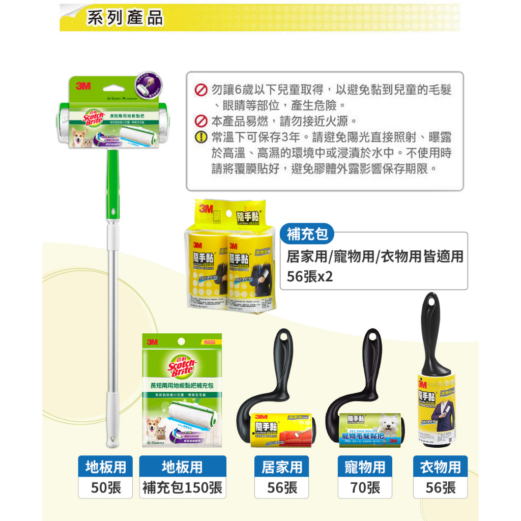3M 百利 隨手黏毛絮黏把-衣物用-56張56張Dusters3M 授權官方旗艦館