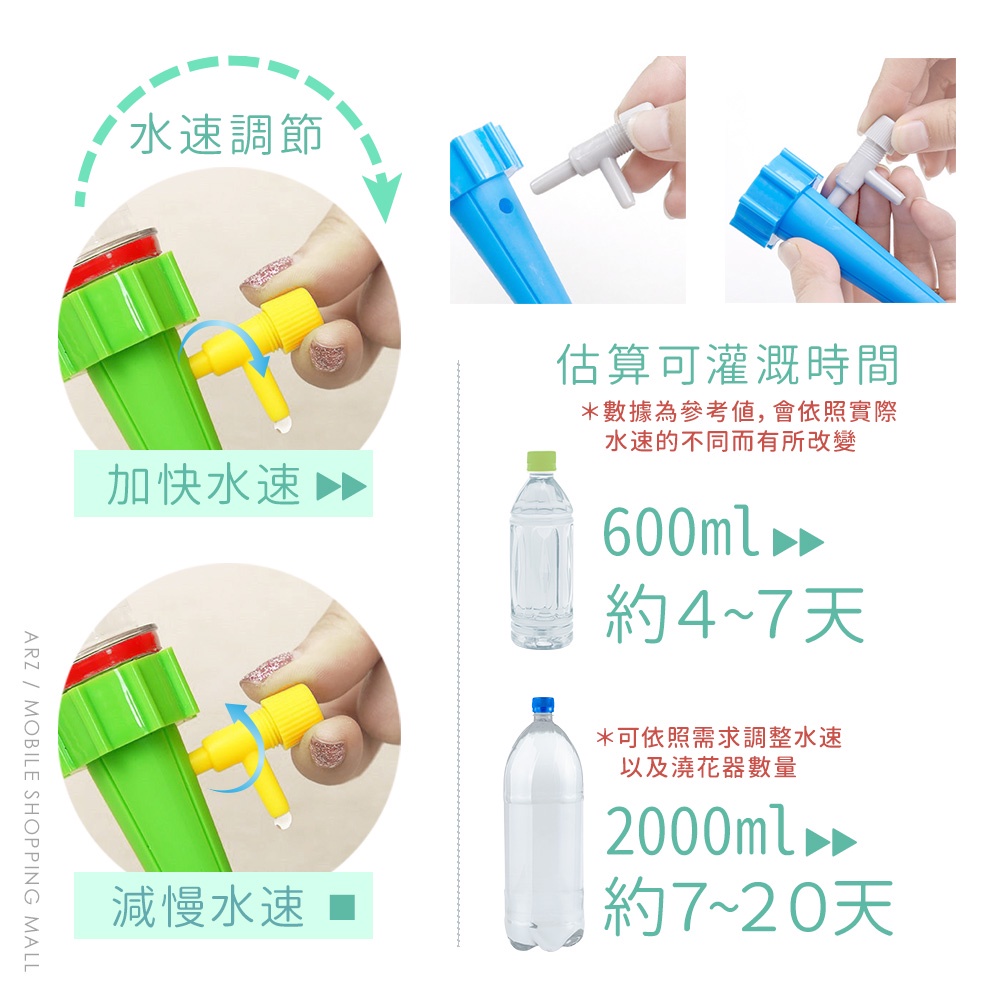 自動澆花器【ARZ 實拍現貨】【C080】可調節水速 自動澆水器 澆花神器 自動滴水器 自動灑水器 自動澆花 自動滴灌藍灰|綠黃Irrigation SystemsARZ行動商城