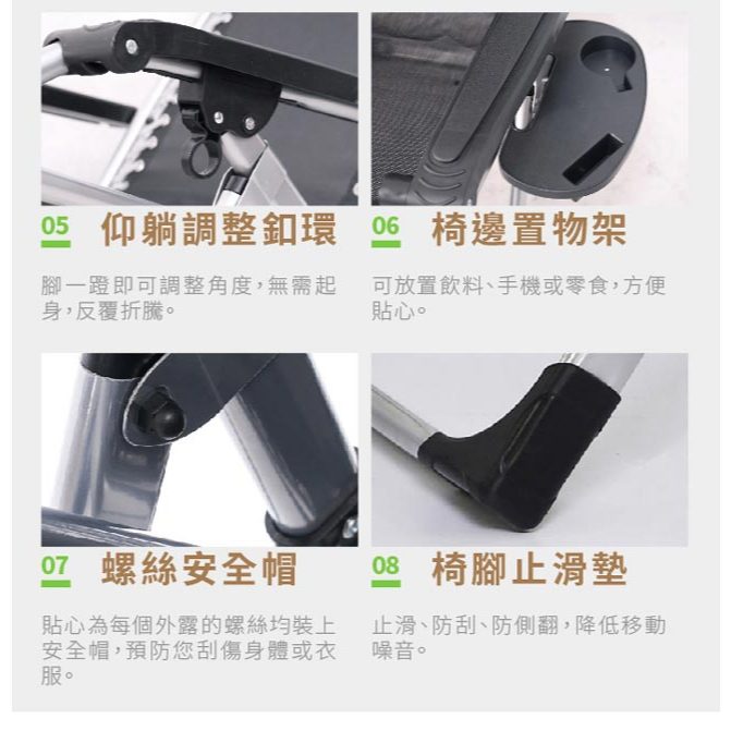 新一代方管無段透氣休閒躺椅 涼椅 午休椅 折疊椅 露營折疊椅 看護椅 (加粗40MM/附置物杯架)【IDEA】黑色|綠色|灰色Benches, Chairs & Stools【IDEA】視覺概念