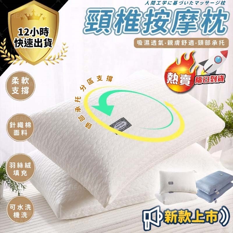 ✨隔日到貨✨頸椎支撐枕 護頸枕 頸椎枕 枕頭 枕芯 羽絲絨枕 助眠枕 按摩枕 高回彈 不易變形塌陷 整顆可水洗機洗舒眠枕藍色-高枕|白色-高枕Pillows【HEAGA 禾家】品牌旗艦店