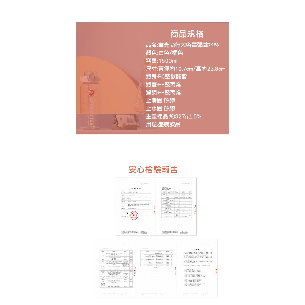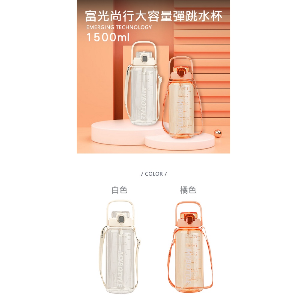 【蝦皮隔日到貨】FUGUANG 綠貝現貨 ins風 學生戶外大容量彈跳水壺 1500ml白色|橘色Water Bottles & Accessories【Green Bell綠貝 官方直營旗艦店】