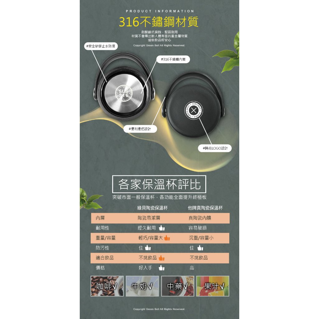 【蝦皮隔日到貨】多入組_Green Bell 綠貝 316不鏽鋼陶瓷純淬保溫杯 隨行杯 550ml【送禮適用】