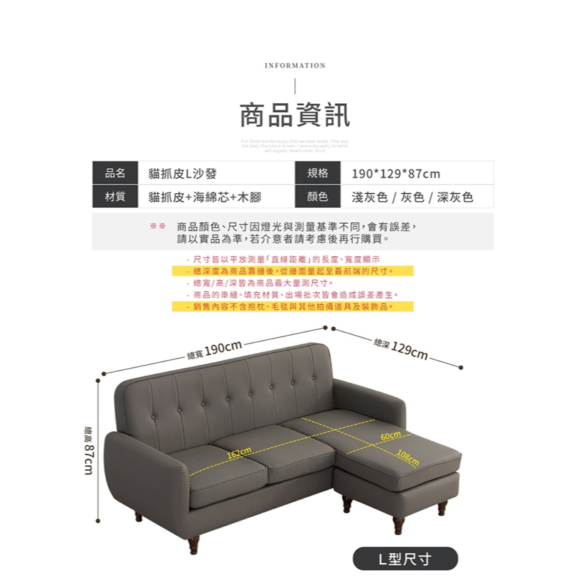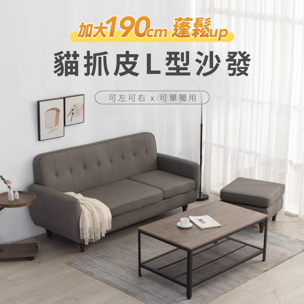 【IDEA】堤尼分離式貓抓皮L型貴妃沙發椅/皮沙發(左右可互換/任選三色)淺灰色|灰色|深灰色Sofas【IDEA】視覺概念