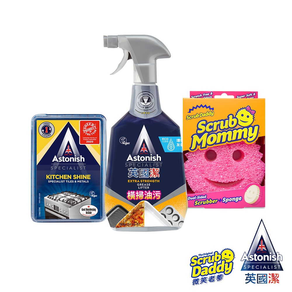 【Astonish】英國潔+微笑老爹超值3入組 除黴 除油 浴廁清潔 焦垢 菜瓜布除黴1入+浴廁1入+老爹1入|除油1入+去汙霸1入+雙面老媽1入|除油1入+老爹1入+老媽1入Cleaning AgentsAstonish 英國潔|官方台灣總代理