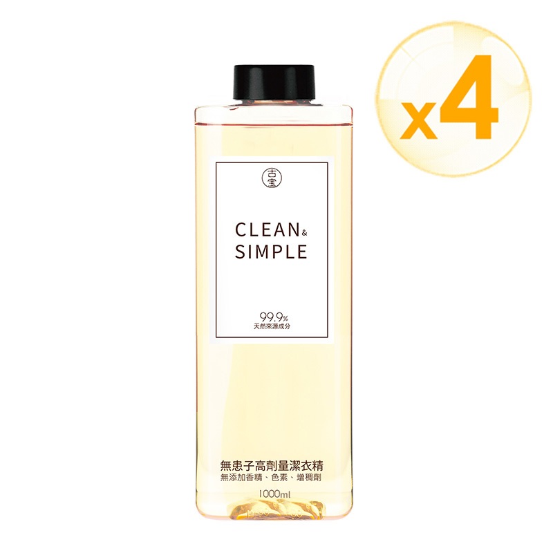 【古寶】無患子萃取高濃度三倍洗淨無香洗衣精1000ml(補充瓶 x 4)新瓶口共4瓶Laundry Care【官方直營】古寶無患子