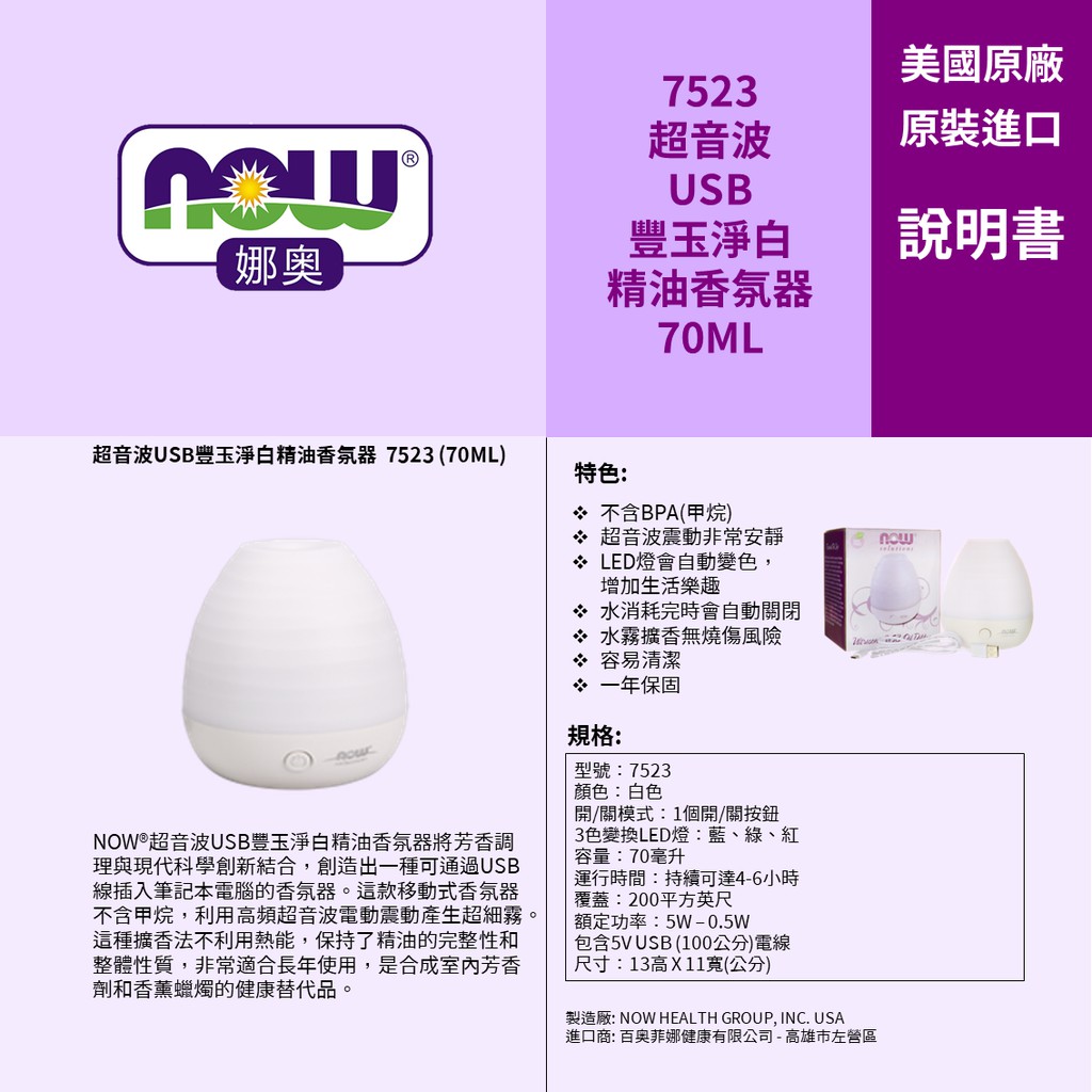 【NOW 娜奧】超音波USB豐玉净白精油香氛器70mL~特惠~Now Foods 7523現貨Diffusers, Humidifiers & Oil Burners【NOW娜奧】官方旗艦店