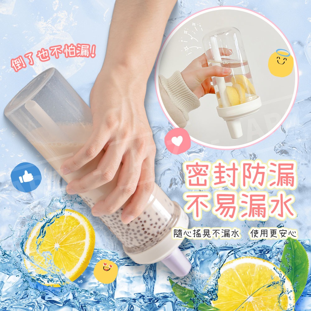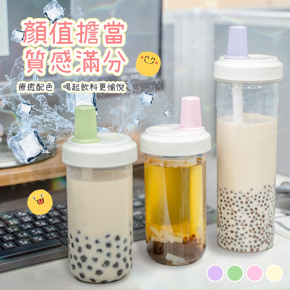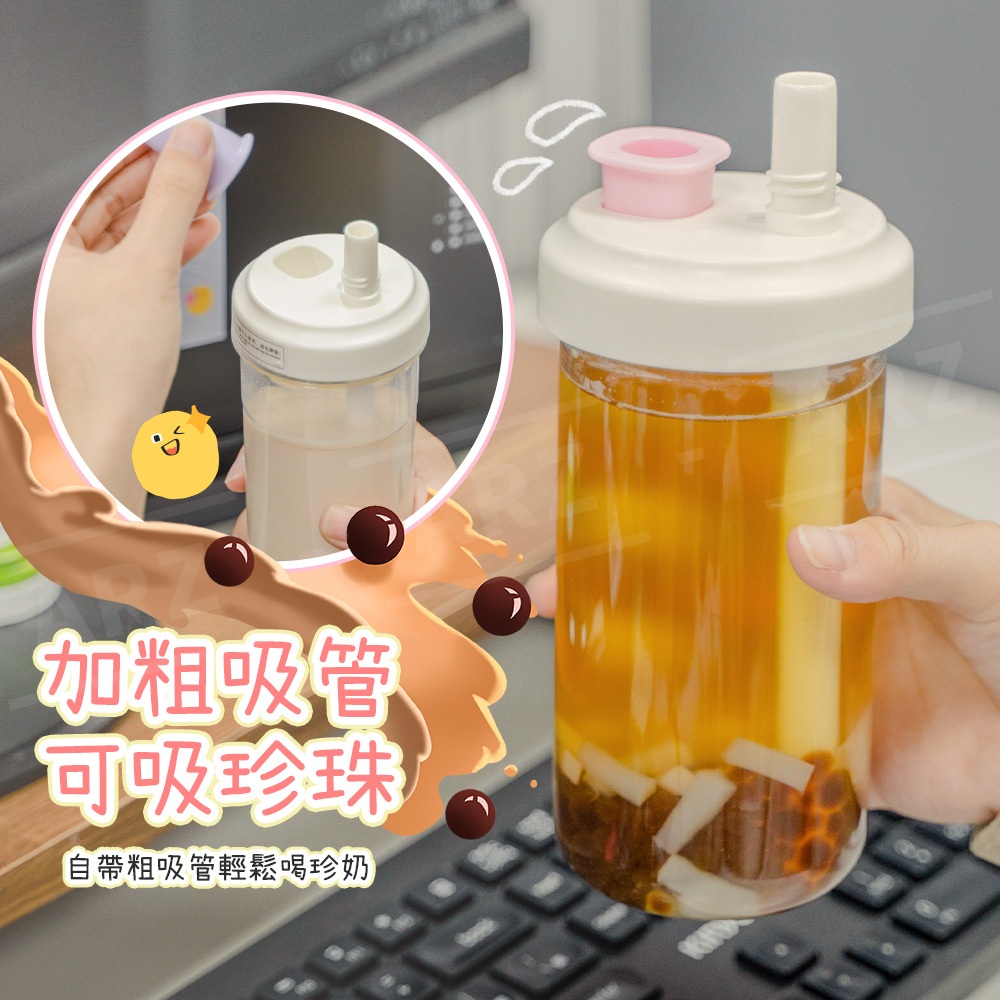 珍珠奶茶杯 粗吸管杯 850/500ml【ARZ 實拍現貨】【F007】手搖杯 隨行杯 大象杯 飲料杯 環保杯 珍奶杯