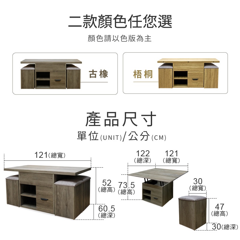 ASSARI-木村高機能升降大茶几餐桌(含椅x4)古橡|梧桐Desks & TablesASSARI 鑫億家具