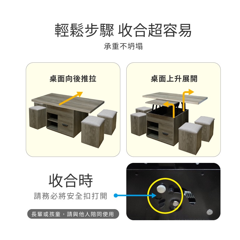 ASSARI-木村高機能升降大茶几餐桌(含椅x4)