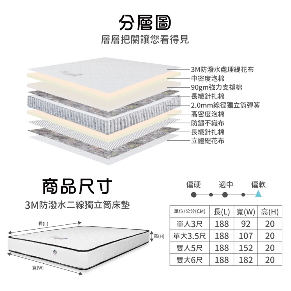 ASSARI-3M防潑水二線獨立筒床墊-單人3尺/單大3.5尺/雙人5尺/雙大6尺單人3尺|單大3.5尺|雙人5尺|雙大6尺MattressesASSARI 鑫億家具