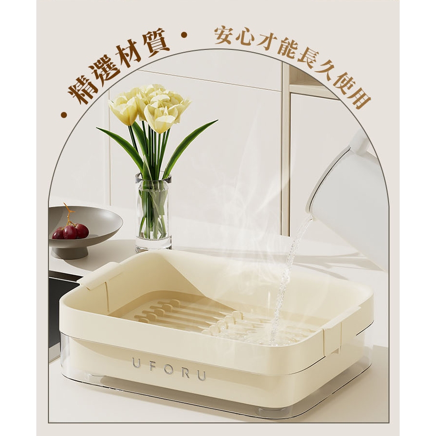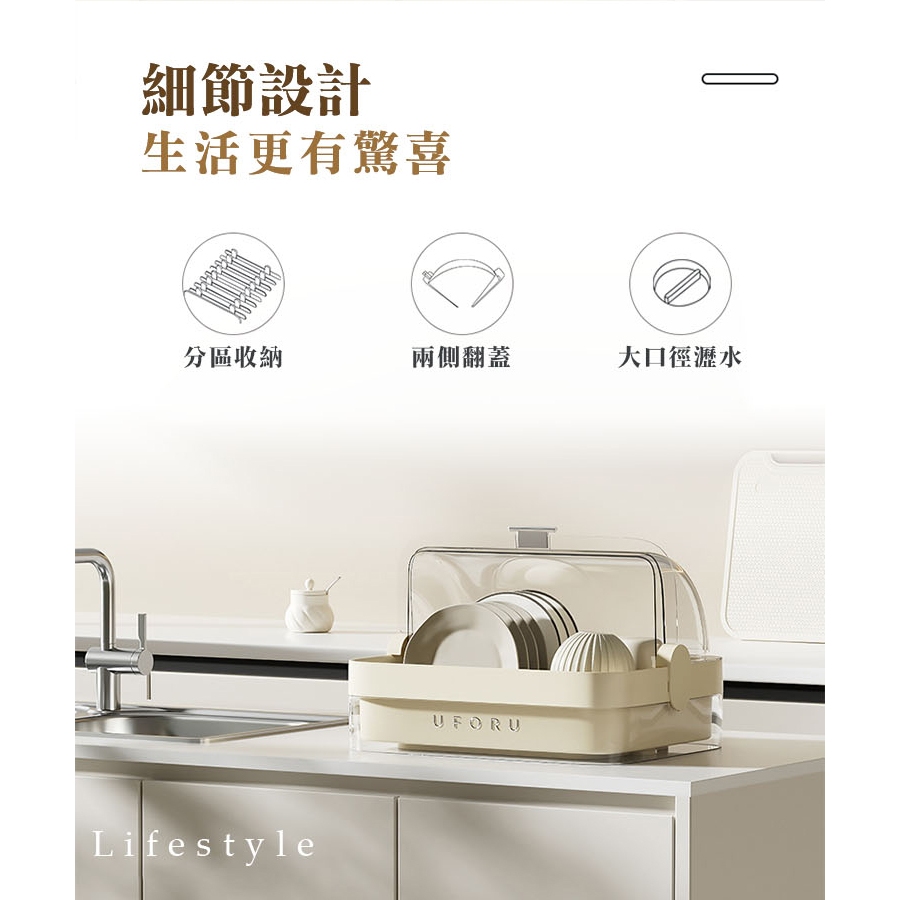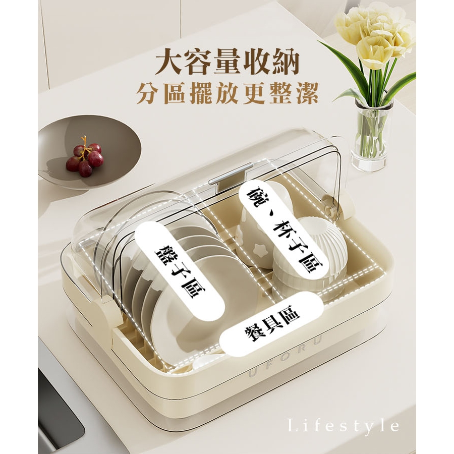 奶油風碗櫃 瀝水收納架 碗盤瀝水架 碗盤收納架 碗架 碗筷收納盒 廚房收納架 碗碟瀝水架 碗櫃 碗筷架 瀝水架碗櫃1入(含蓋)|福利品-碗櫃(無蓋子)|【無原箱】碗櫃1入(含蓋)Kitchen Racks【Fameli】品味生活館