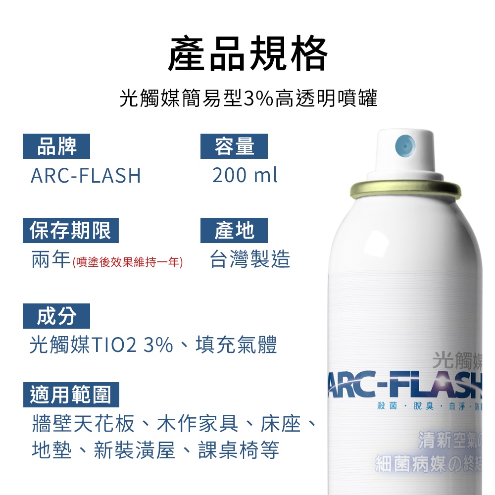 【ARC-FLASH光觸媒】3%高透明 簡易型噴罐 200ml(除甲醛 殺菌 除臭 玻璃 磁磚 鏡面)