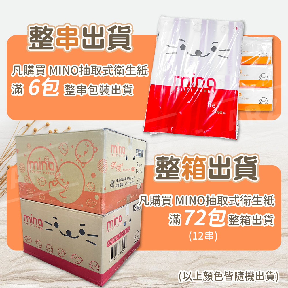MINO 洣濃 100抽衛生紙一串 台灣製【ARZ】【E092】可溶水衛生紙 抽取式衛生紙 可愛衛生紙一箱 餐巾紙面紙巾顏色隨機出貨,100抽/包Tissue & Paper TowelsARZ行動商城