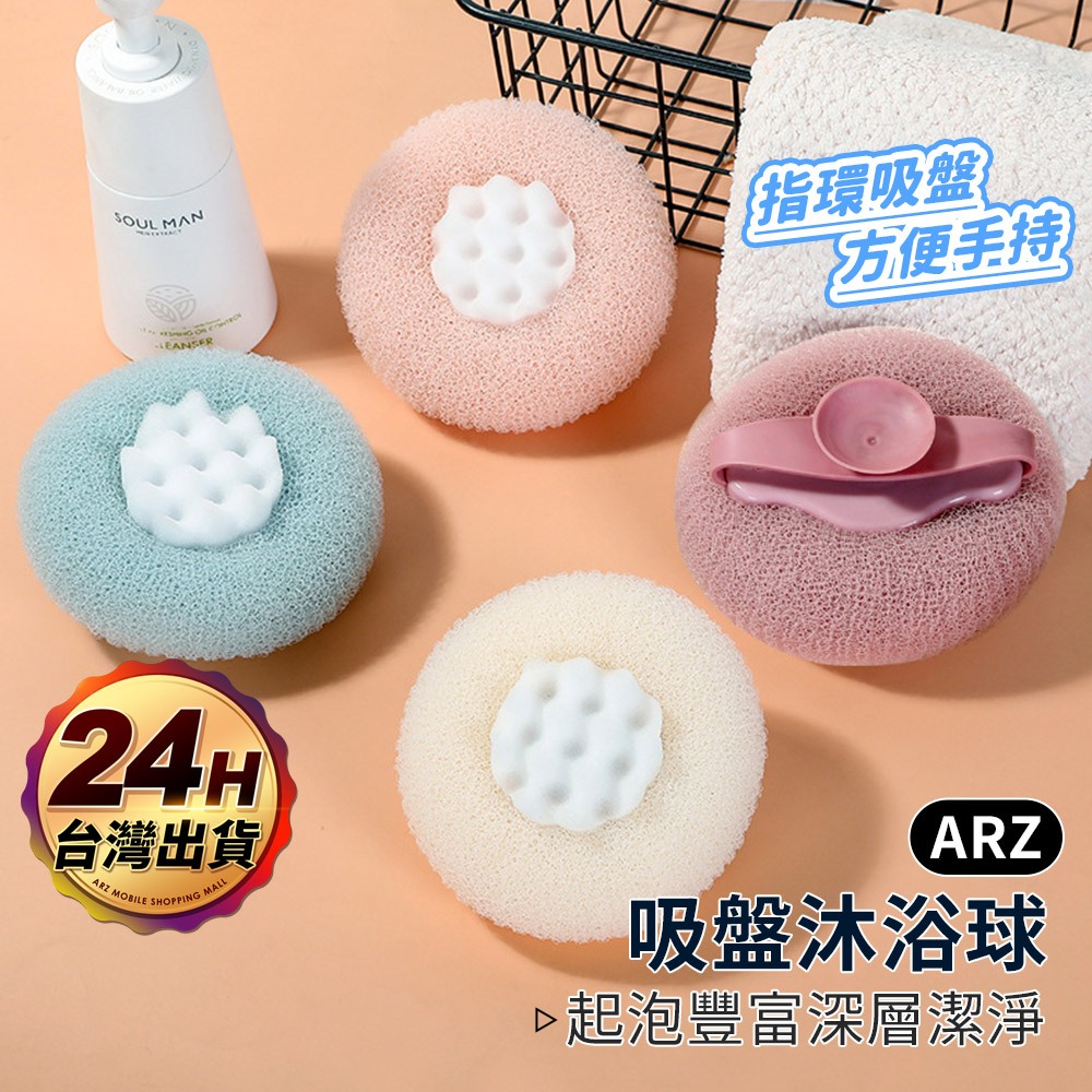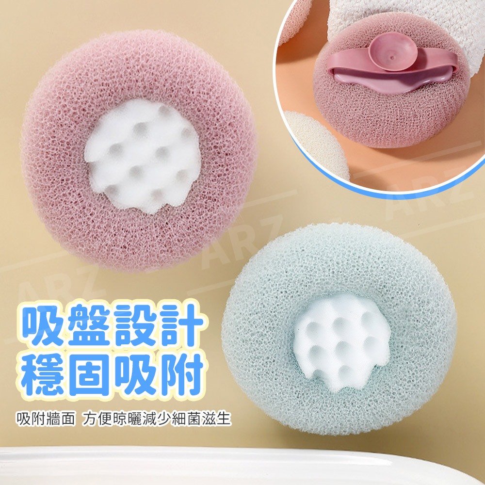吸盤沐浴球 按摩沐浴球 搓澡神器【ARZ】【E277】起泡球 刷背 搓澡巾 沐浴刷 洗澡神器 浴花球 洗澡刷 搓澡球象牙白|珊瑚粉|莓果紫|湖水藍Bath Brushes & LoofahsARZ行動商城