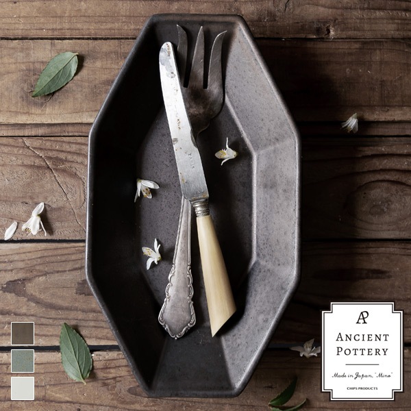 美濃燒 CHIPS Ancient Pottery 古董風八角長盤 [偶拾小巷] 日本製白色|灰色|古銅色Bowls[偶拾小巷]