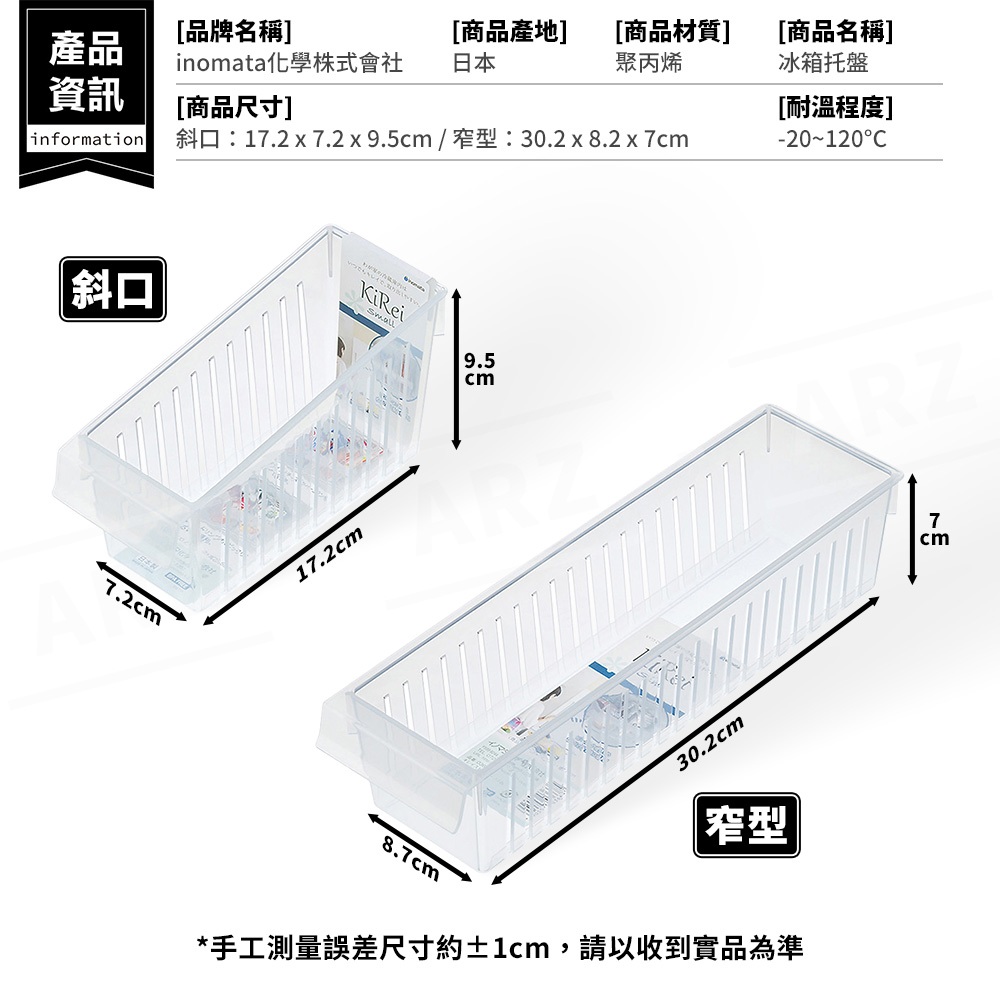 Inomata 冰箱收納 托盤 日本製【ARZ】【G004】冰箱收納盒 置物籃 收納籃 廚房收納 置物盒 收納盒 整理盒斜口|窄型|寬型|超寬型Kitchen RacksARZ行動商城