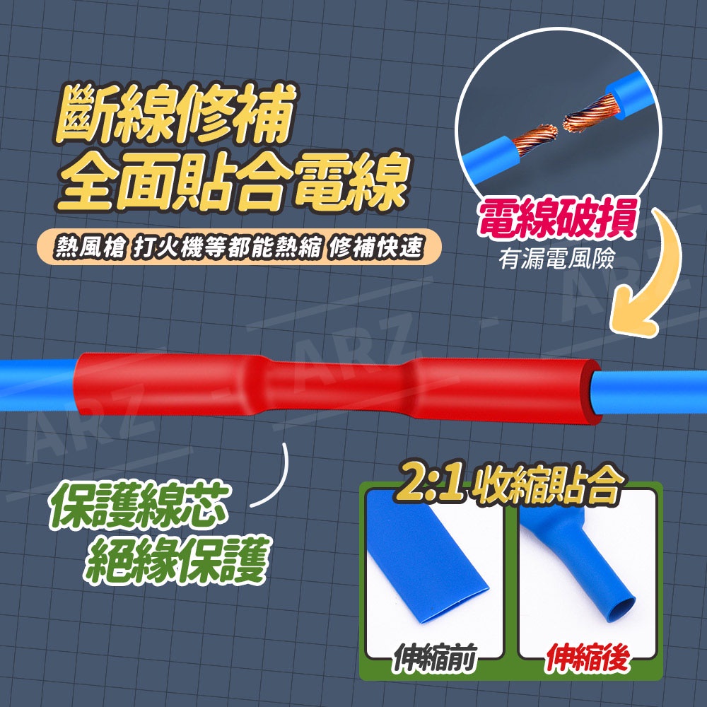 熱收縮套管【ARZ 實拍現貨】【D256】彩色熱縮管 電線熱縮管套 絕緣管 電線保護套 熱縮套 電線防塵套 熱收縮管組