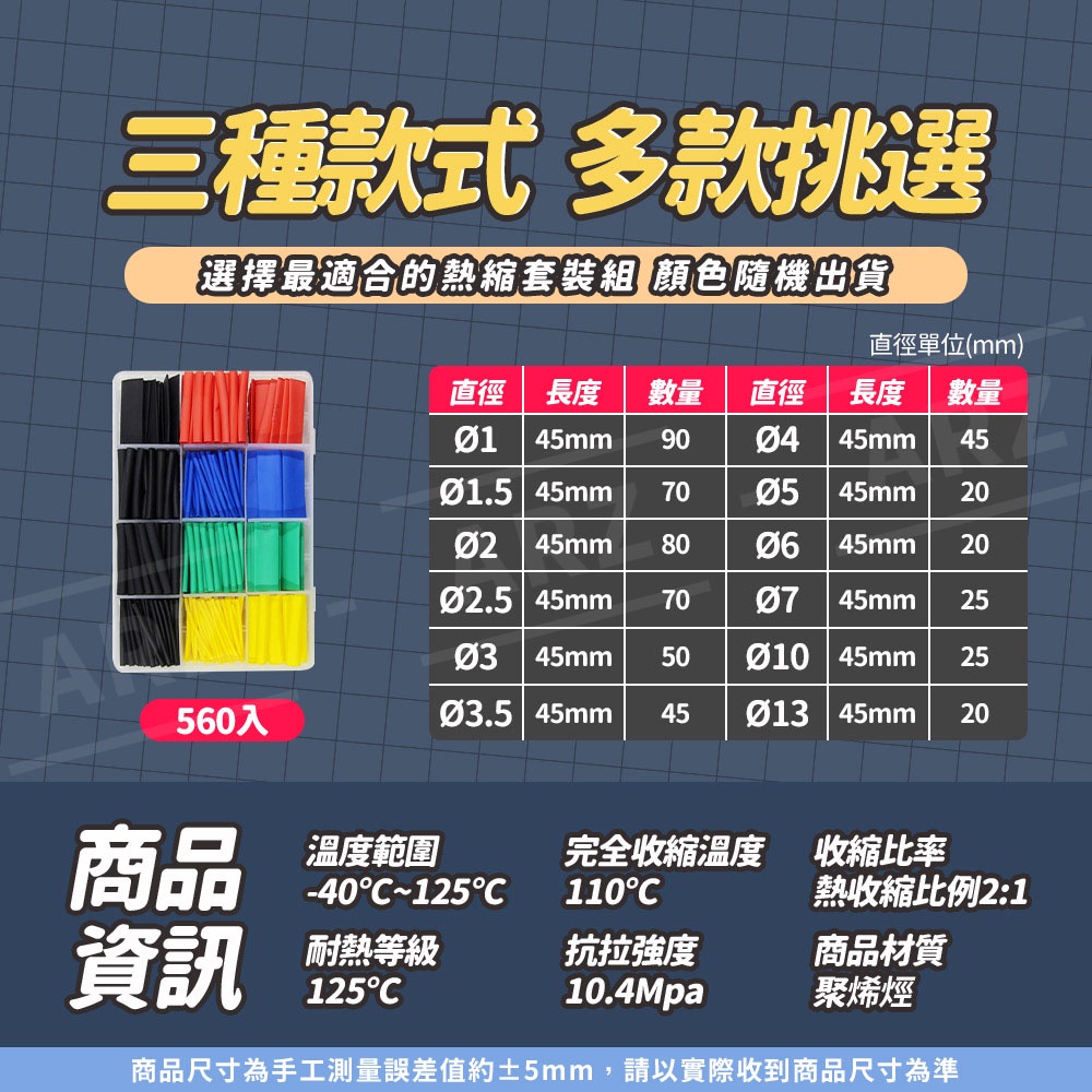 熱收縮套管【ARZ 實拍現貨】【D256】彩色熱縮管 電線熱縮管套 絕緣管 電線保護套 熱縮套 電線防塵套 熱收縮管組164入/袋裝,顏色隨機出貨|328入/盒裝,顏色隨機出貨|560入/盒裝,顏色隨機出貨OthersARZ行動商城