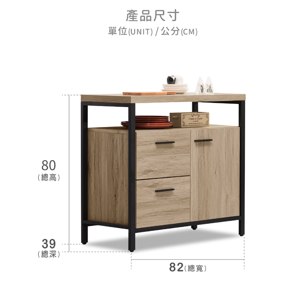 ASSARI-佐久間日式2.7尺餐櫃下座(寬82x深39x80cm)