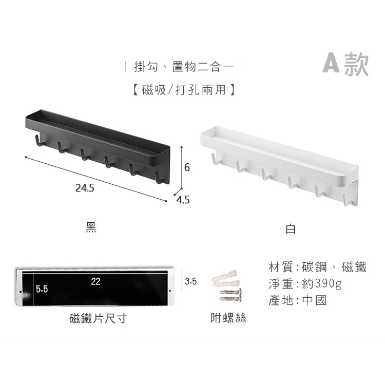 磁吸式鑰匙掛鉤架 玄關收納架 置物架 掛架 磁鐵側掛架 收納架 鑰匙架 日式磁吸掛勾 廚房冰箱掛架 免打孔A款,黑色|A款,白色|B款,黑色|B款,白色Hooks【Fameli】品味生活館