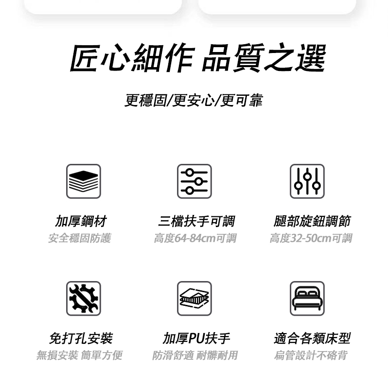 [LADUTA拉布塔]床邊不折疊扶手安全扶手床邊把手老人床邊扶手 起床輔助器 老人扶手 床邊扶手 起床助力器黑色Safety Handles【LADUTA 拉布塔】官方旗艦店