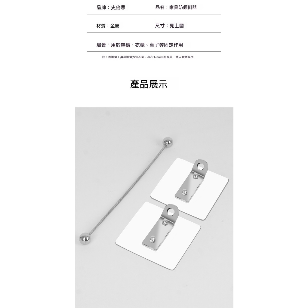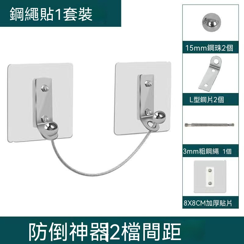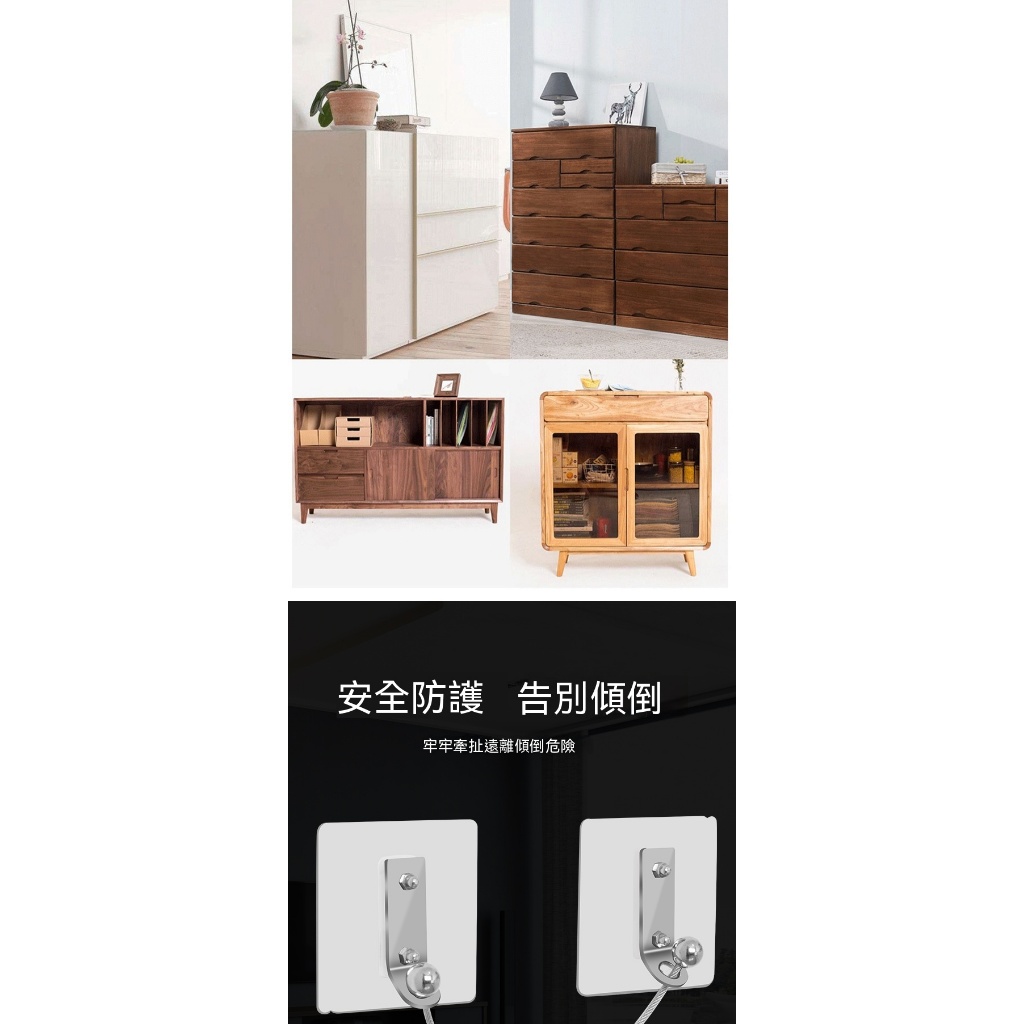 【LADUTA 拉布塔】安全無痕傢具防倒器 免打孔 地震傢俱櫃子固定 書架電視冰箱防傾倒支架固定器 不銹鋼無痕貼加厚鋼繩1套(繩長20CM)|加厚鋼繩1套(繩長35CM)Hooks【LADUTA 拉布塔】官方旗艦店