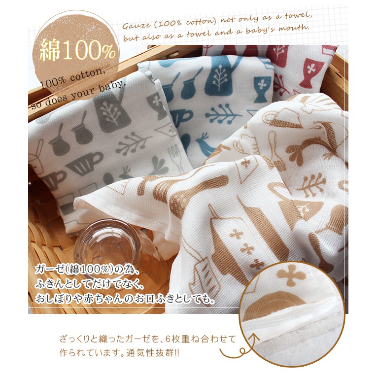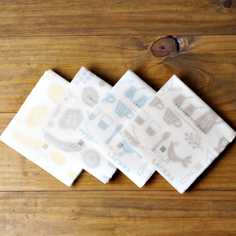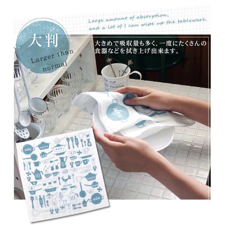 原田織物 六重紗 大尺寸 純棉廚房抹巾 (共4色) [偶拾小巷] 日本製黃色蔬果|灰色蔬果|藍色道具|咖啡色道具Cleaning Cloths[偶拾小巷]