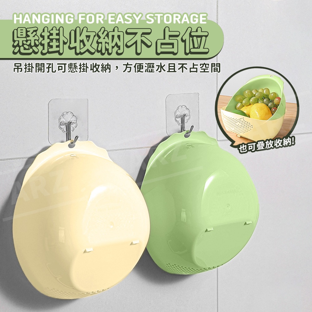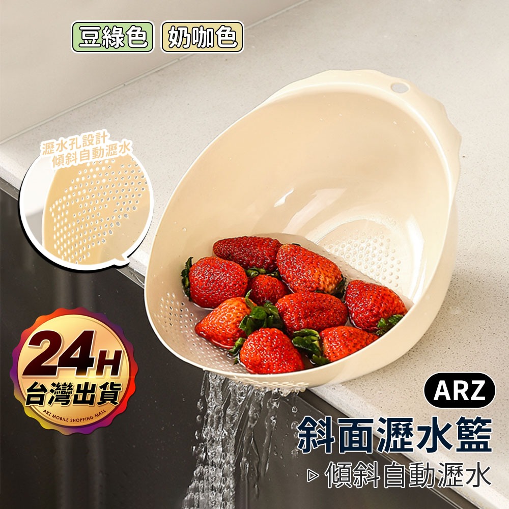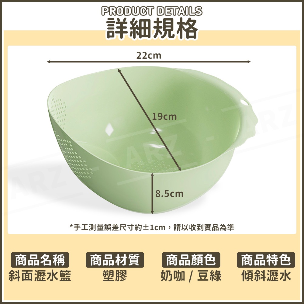 瀝水籃 可斜放 蔬果瀝水籃【ARZ】【F302】洗米瀝水籃 密孔瀝水籃 洗米籃 洗菜籃 洗菜盆 水果籃 瀝水盆 濾水籃奶咖|豆綠OthersARZ行動商城