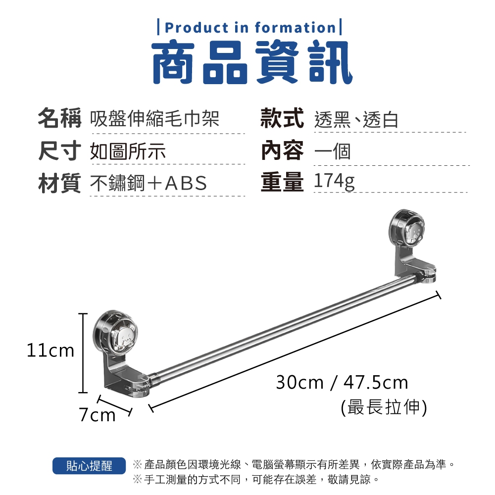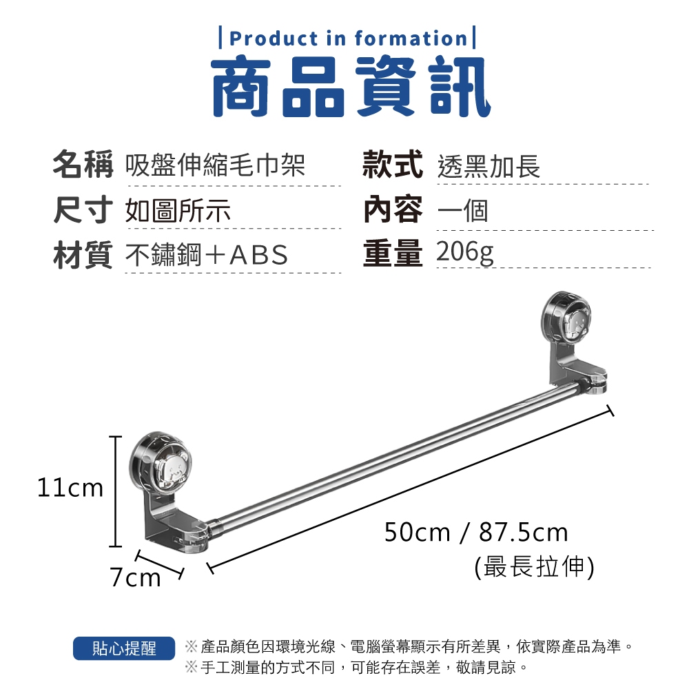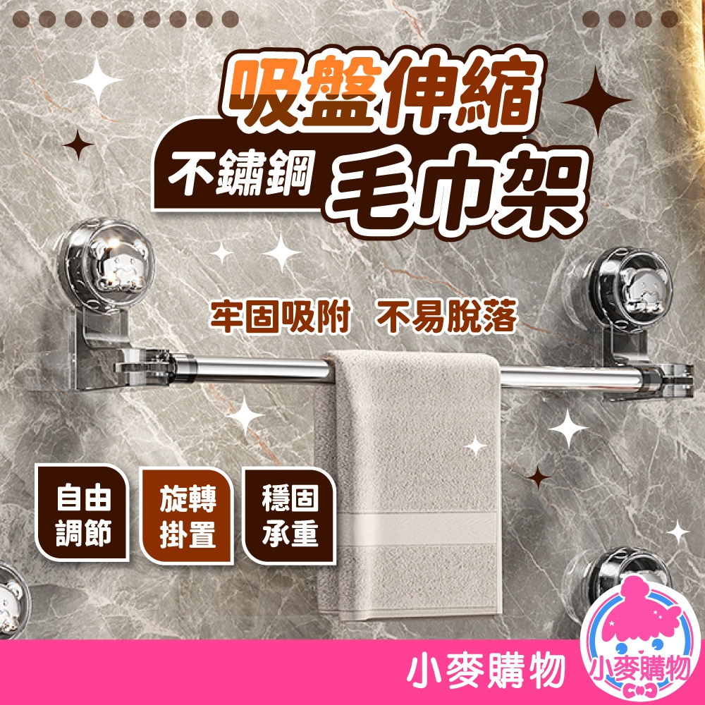 吸盤伸縮毛巾架 不鏽鋼 毛巾架 浴室毛巾架 浴室掛桿 拖鞋架 拖鞋掛桿 收納架 鍋蓋架【小麥購物】【C580】透白|透黑|加長|透黑Bathroom Racks & Cabinets 小麥購物