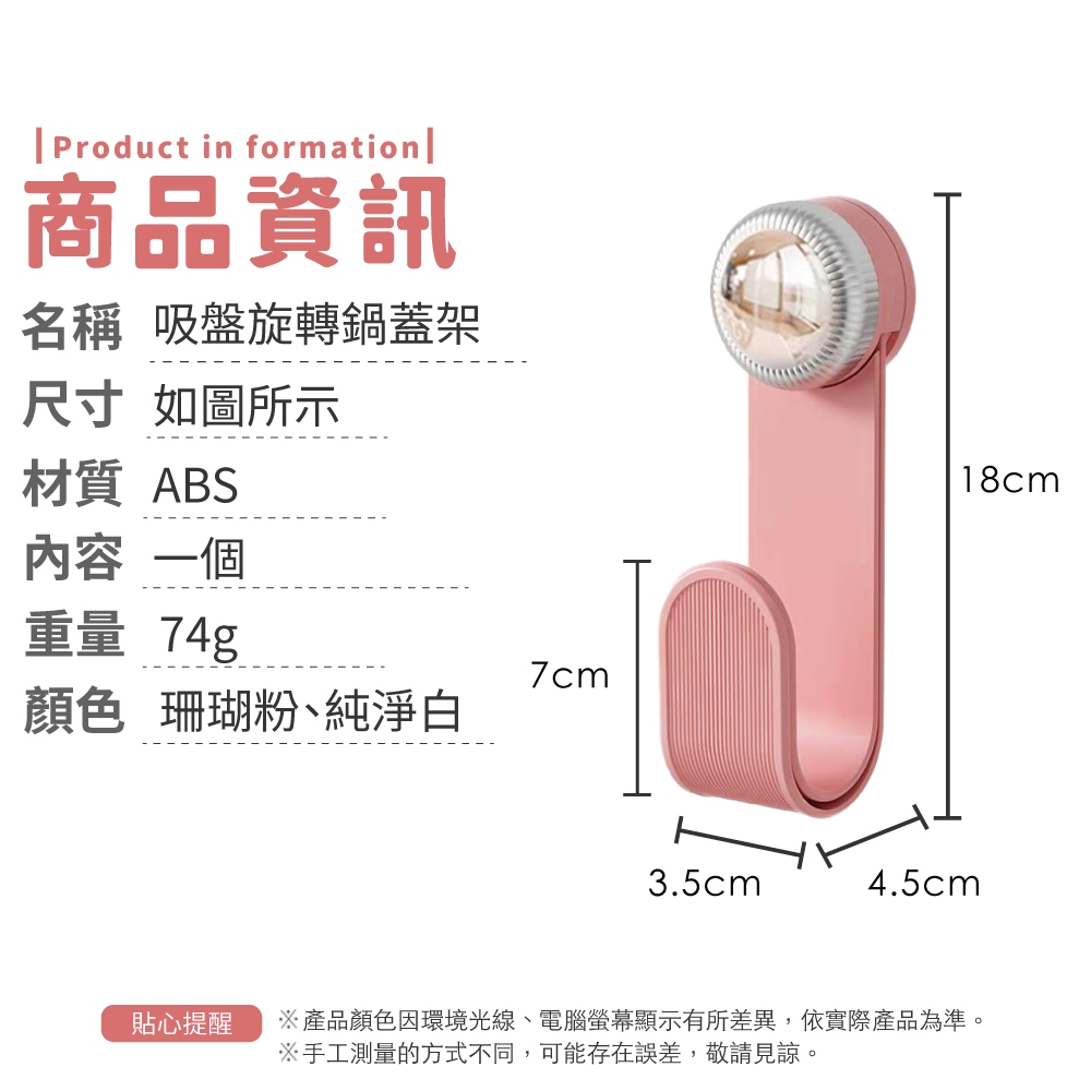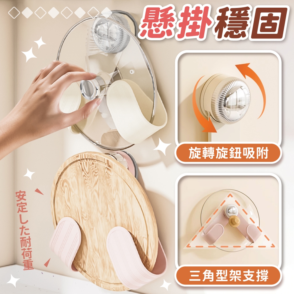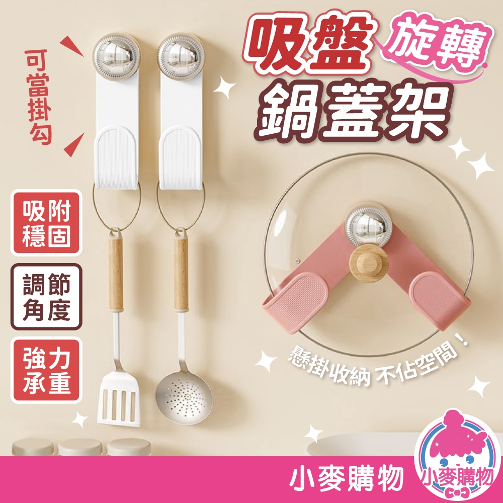 吸盤旋轉鍋蓋架 吸盤鍋蓋架 壁掛鍋蓋架 廚房置物架 廚房收納 免打孔鍋蓋架 砧板架 【小麥購物】【G889】珊瑚粉|純淨白Kitchen Racks 小麥購物