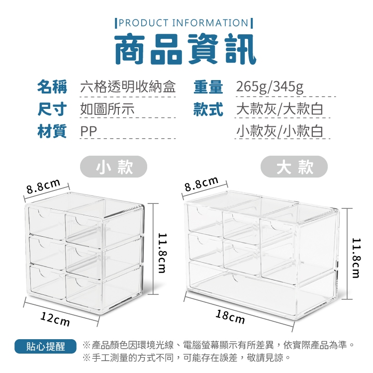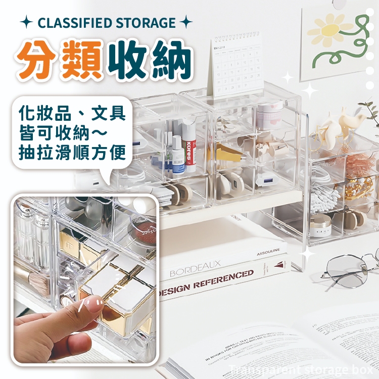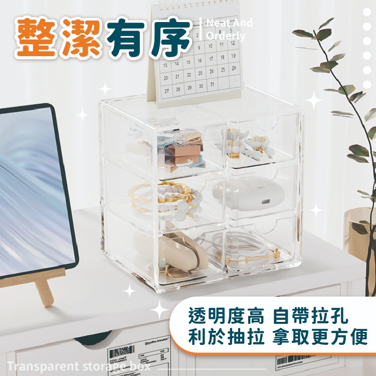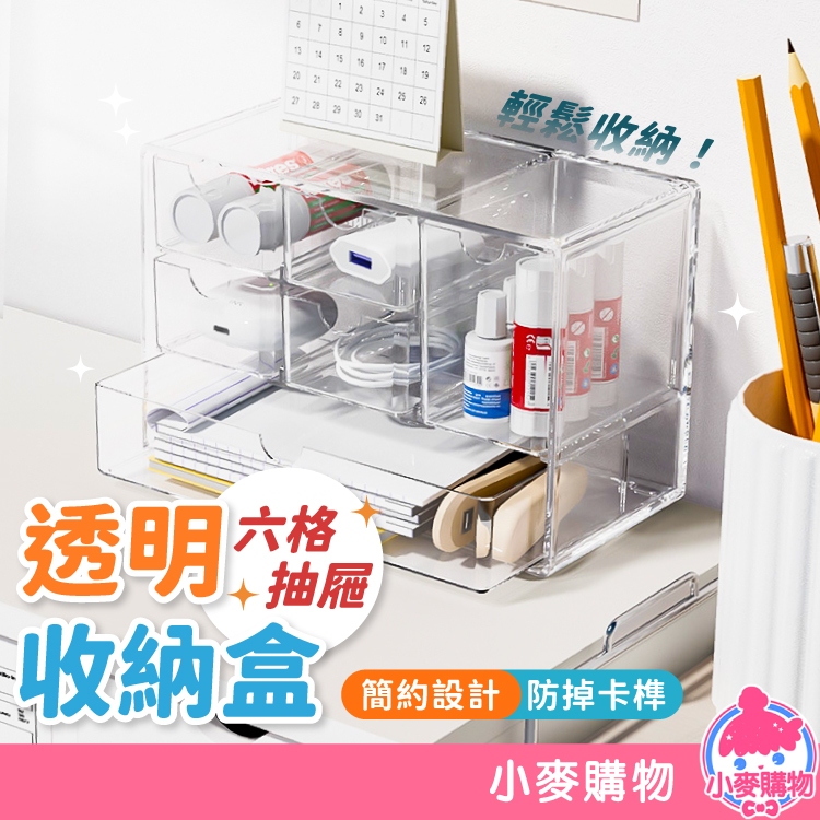 六格透明收納盒 抽屜收納盒 桌上收納 抽屜式收納【小麥購物】24H出貨 抽屜式 收納盒 小物收納 收納【Y811】透明|大款|透明|小款|透黑|大款|透黑|小款Desk Organizers 小麥購物