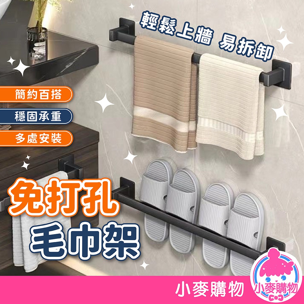 免打孔毛巾架 毛巾架 浴室毛巾架 免打孔毛巾桿 廁所掛桿 拖鞋架 拖鞋掛桿 收納架 壁掛 收納桿【小麥購物】【Y580】