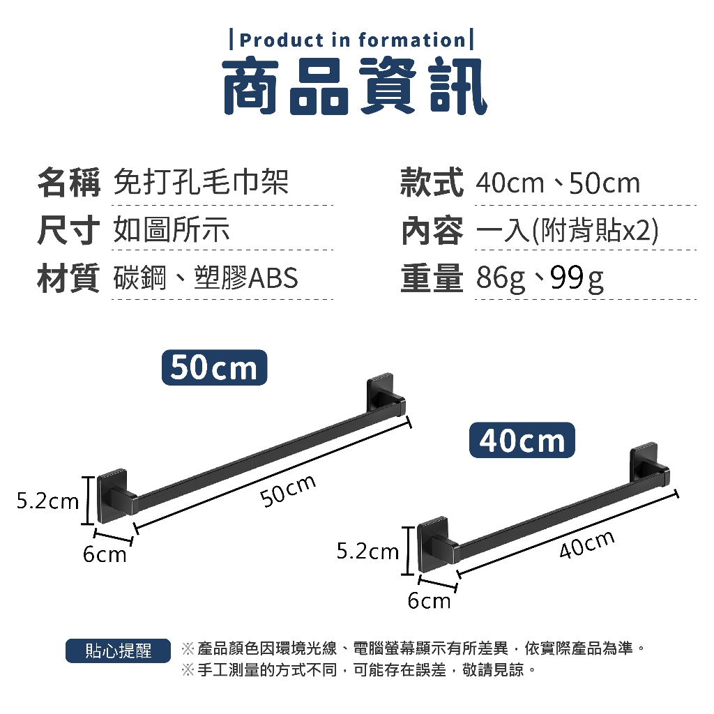 免打孔毛巾架 毛巾架 浴室毛巾架 免打孔毛巾桿 廁所掛桿 拖鞋架 拖鞋掛桿 收納架 壁掛 收納桿【小麥購物】【Y580】40cm|附背貼x2|50cm|附背貼x2Others 小麥購物