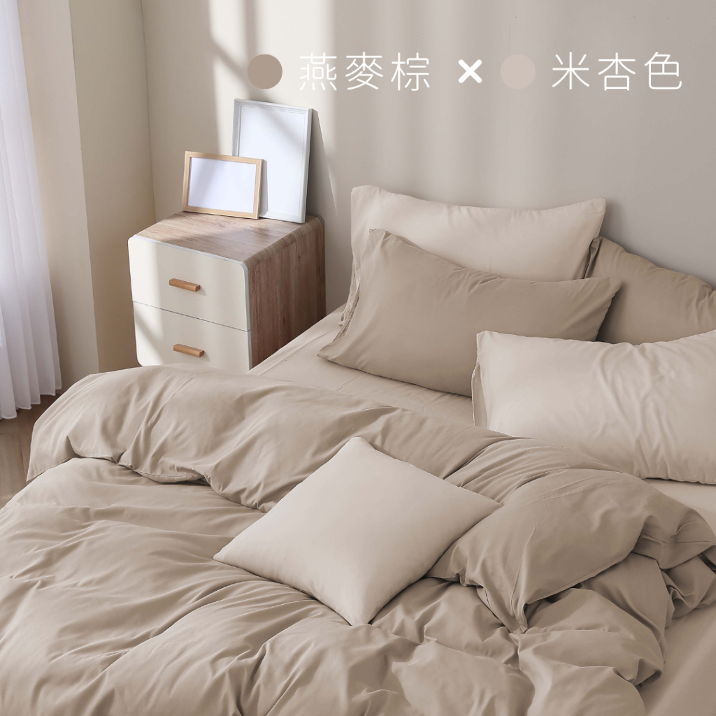 AnDHouse 素色-雙色配 / 雙人床包被套組 | 經典素色舒柔棉米杏色床包+米杏色枕套+燕麥棕被套,雙人薄床包*1+枕套*2+加大薄被套*1|淺駝色床包+淺駝色枕套+芥黃色被套,雙人薄床包*1+枕套*2+雙人薄被套*1|淺駝色床包+淺駝色枕套+芥黃色被套,雙人薄床包*1+枕套*2+加大薄被套*1|卡其床包+卡其枕套+裸膚色被套,雙人薄床包*1+枕套*2+雙人薄被套*1|卡其床包+卡其枕套+裸膚色被套,雙人薄床包*1+枕套*2+加大薄被套*1|米杏色床包+米杏色枕套+燕麥棕被套,雙人薄床包*1+枕套*2+雙人薄被套*1Bedsheets, Pillowcases & Bolster CasesAnD House 安庭家居 素色寢具第一品牌
