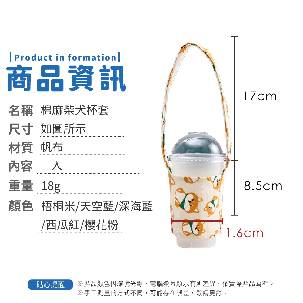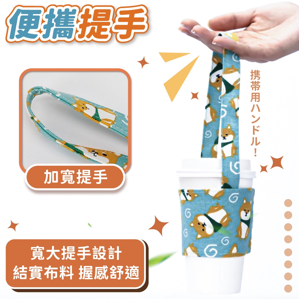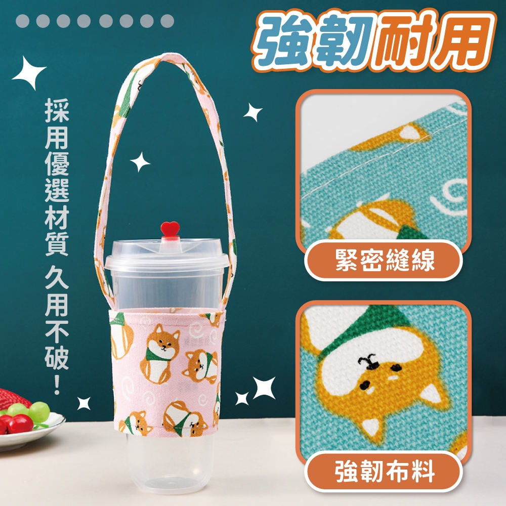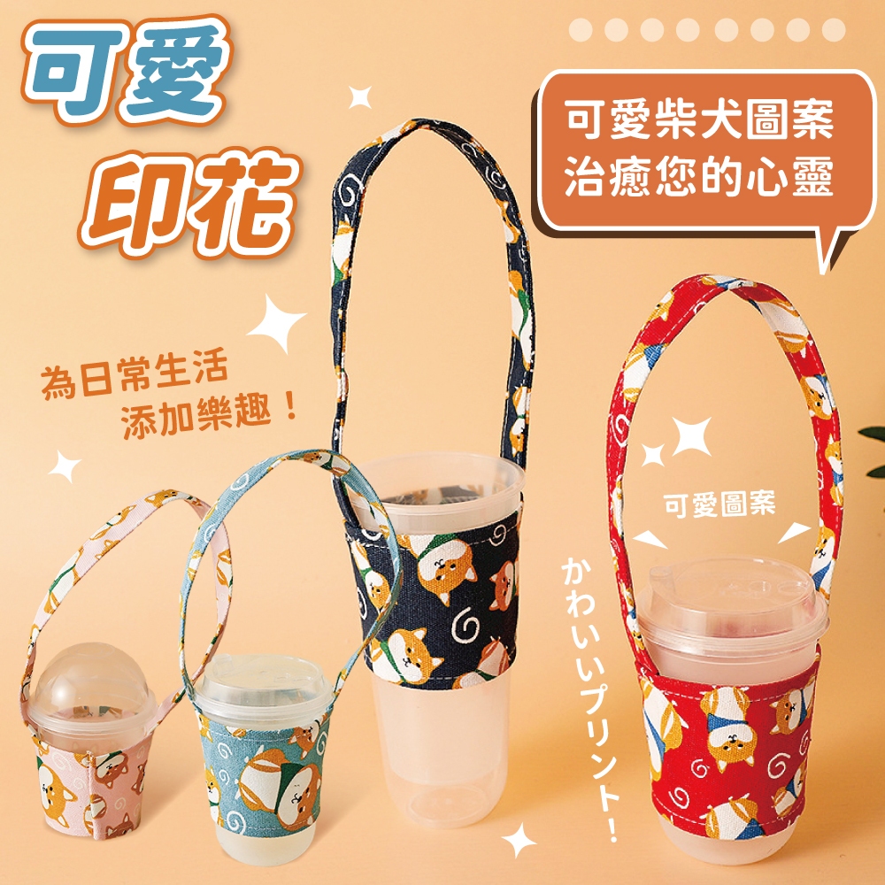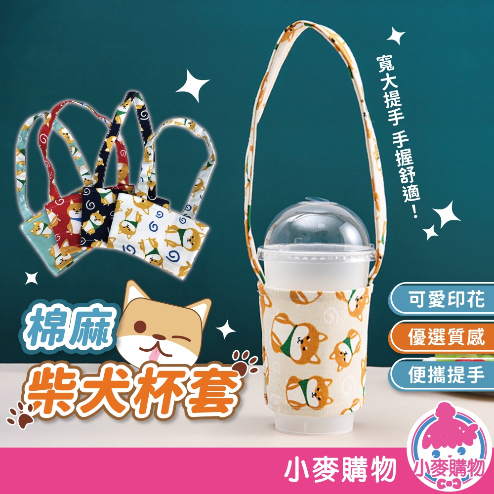 棉麻柴犬杯套 飲料杯套 環保提袋 飲料袋 提帶 收納 杯套 超Q柴犬杯套 柴犬【小麥購物】【G655】梧桐米|深海藍|西瓜紅|櫻花粉|天空藍Others 小麥購物